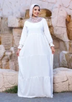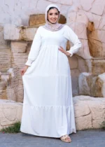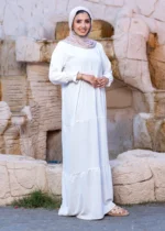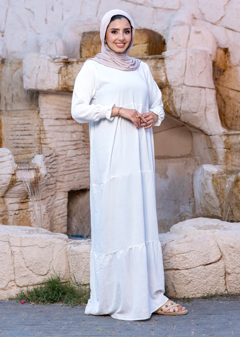 اشتري بيزك أبيض محتشم طويل من خامة كتان ناعمة وخفيفة بتصميم واسع للمحجبات. مثالي للإطلالات الكاجوال والمناسبات البسيطة، مريح وأنيق للصي