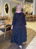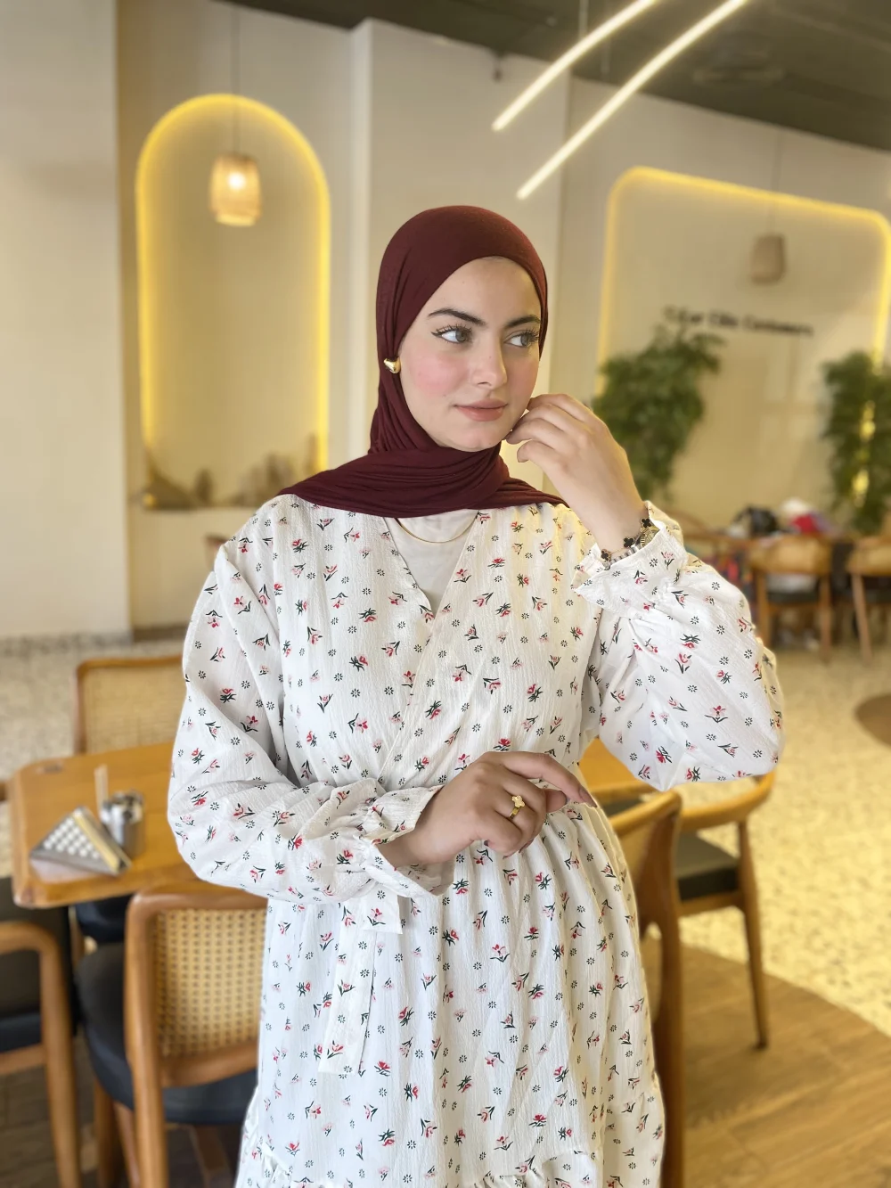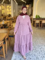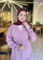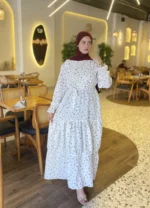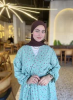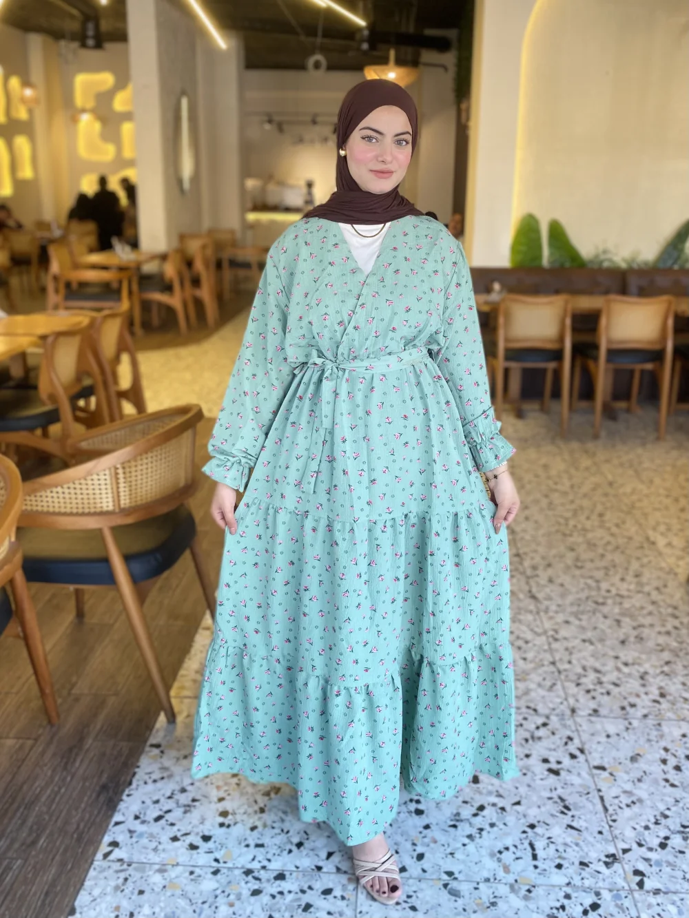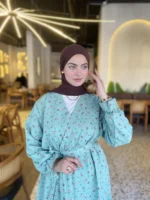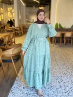 اكتشفي دريس مشجر واسع باللون الأخضر بتصميم أنيق ومريح، مثالي للمحجبات والخروجات الكاجوال مع لمسة عصرية واحتشام.