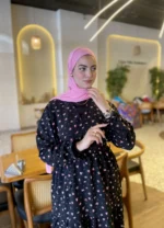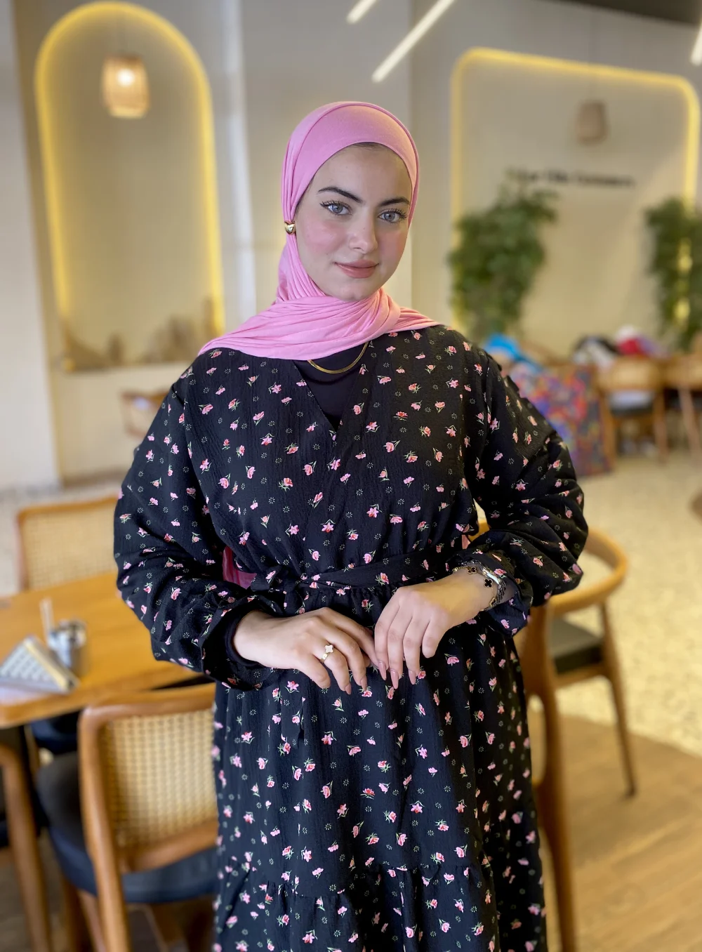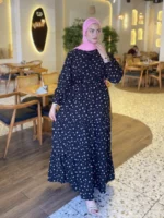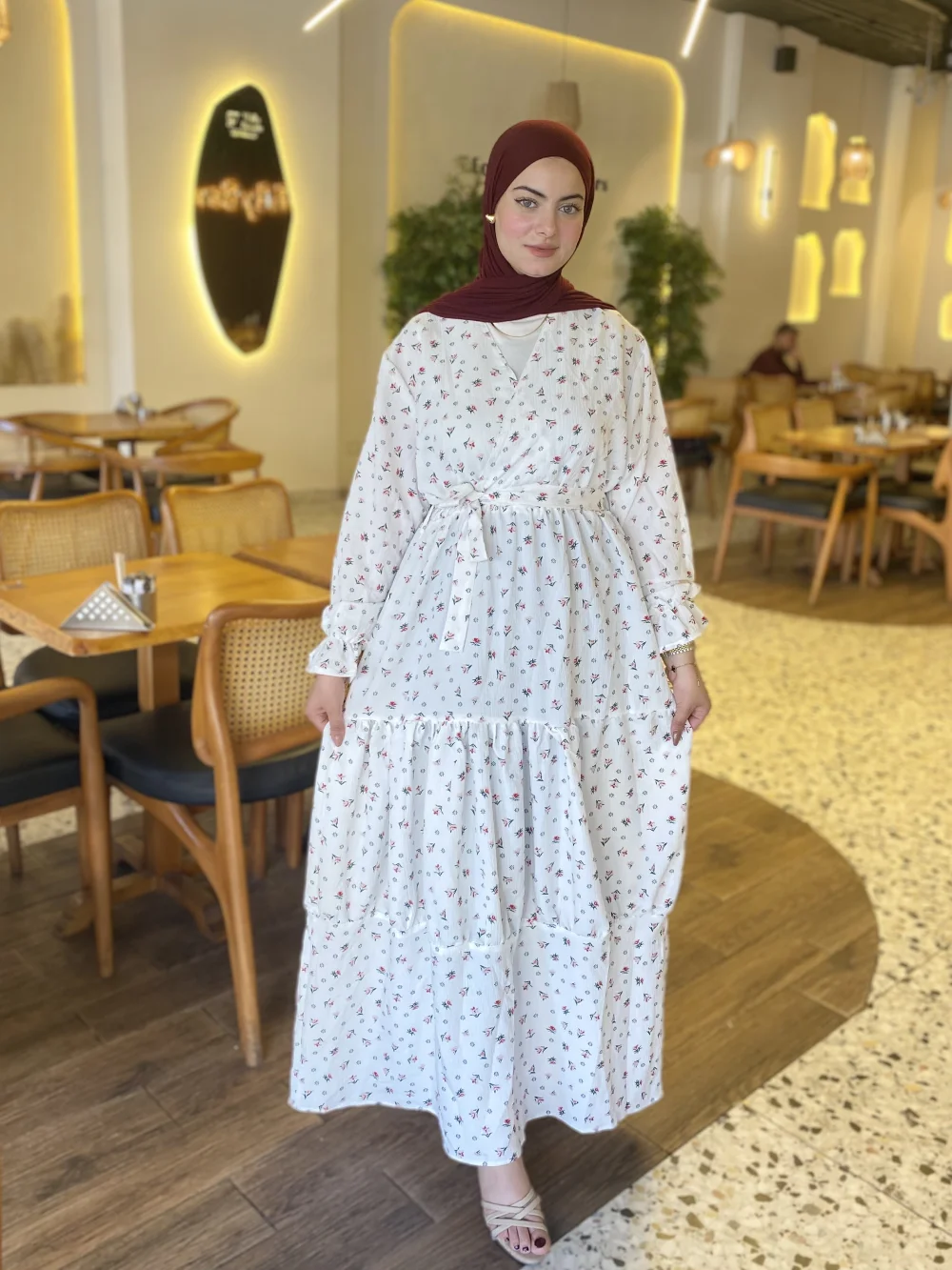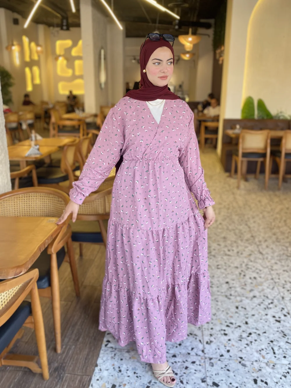 اكتشفي دريس مشجر واسع باللون الأخضر بتصميم أنيق ومريح، مثالي للمحجبات والخروجات الكاجوال مع لمسة عصرية واحتشام.